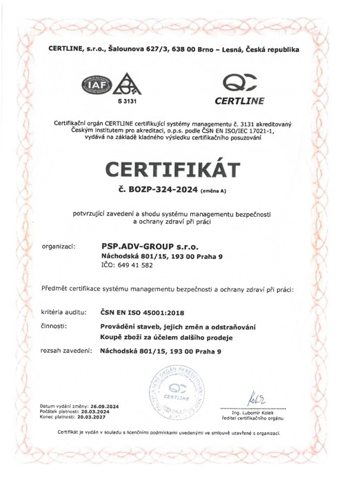 Naše společnost zaměřuje maximální pozornost na zvyšování celkové úrovně kvality poskytovaných služeb s ohledem na řešení komplexnosti služeb zaměřených na rekonstrukce panelových domů. Samozřejmostí je zavedení systému jakosti: ČSN EN ISO 9001:2016, ČSN EN ISO 14001:2016 a ČSN EN ISO 45001:2018